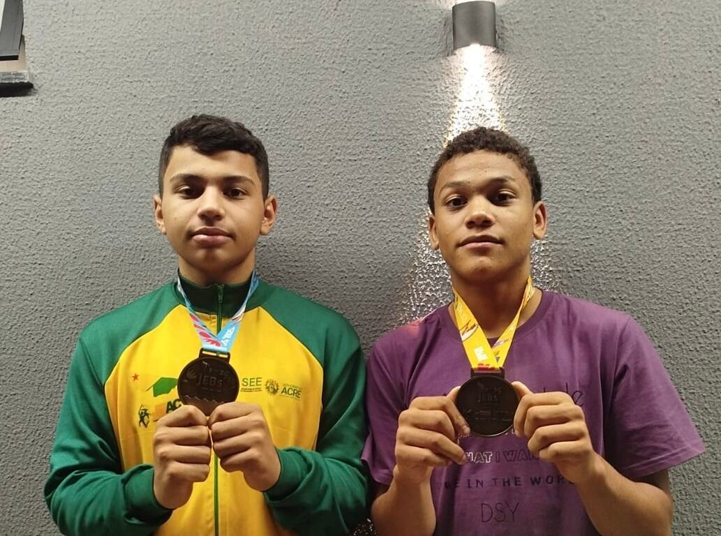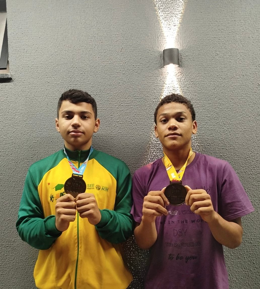 Os estudantes/atletas Paulo Lopes e Eryck Douglas, da escola Divina Providência de Xapuri, conquistaram nessa quarta, 22, em Uberlândia, Minas Gerais, medalhas de bronze no Wrestling nos Jogos Escolares Brasileiros (Jeb´s).